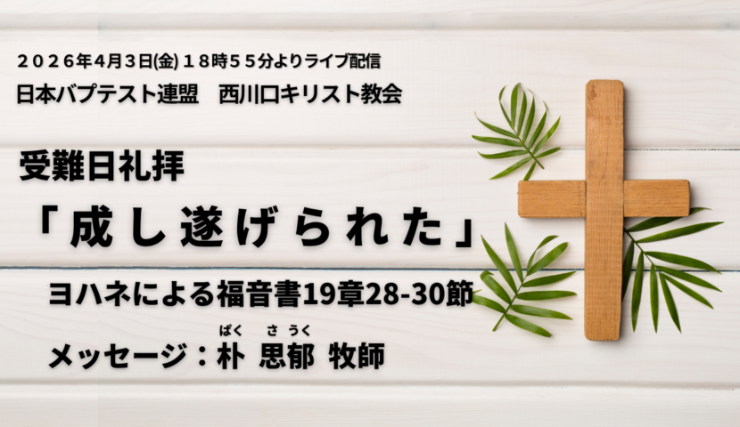 本日(4月3日・金 18:55~)の受難日礼拝をライブ配信いたします
