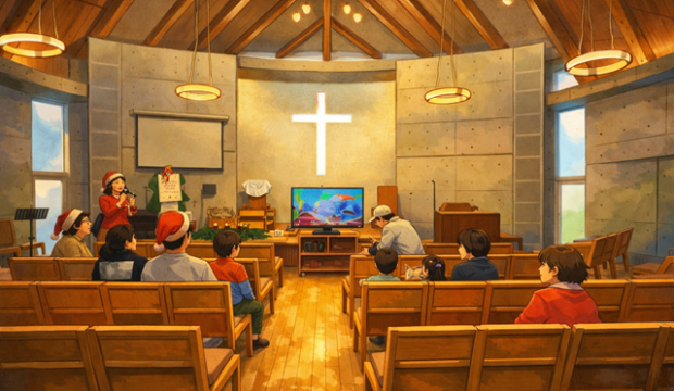 それにしても、なかなか感じの良い仮会堂に仕上がりました。