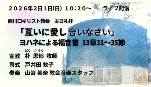 礼拝-YOUTUBE配信 2021年12月19日(日) クリスマス礼拝 ライブ配信 2021.12.19 4分45秒くらいまで早送りしていただくと礼拝が始まります。 2021年12月12日(日) 在宅主日礼拝 宣教要旨 「神の愛、キリストの愛」 ローマの信徒への手紙8章31-39節 前の記事 2021年12月19日(日) 在宅クリスマス礼拝 宣教要旨「来ませり救い主」マタイによる福音書20 章 25-28 節 次の記事